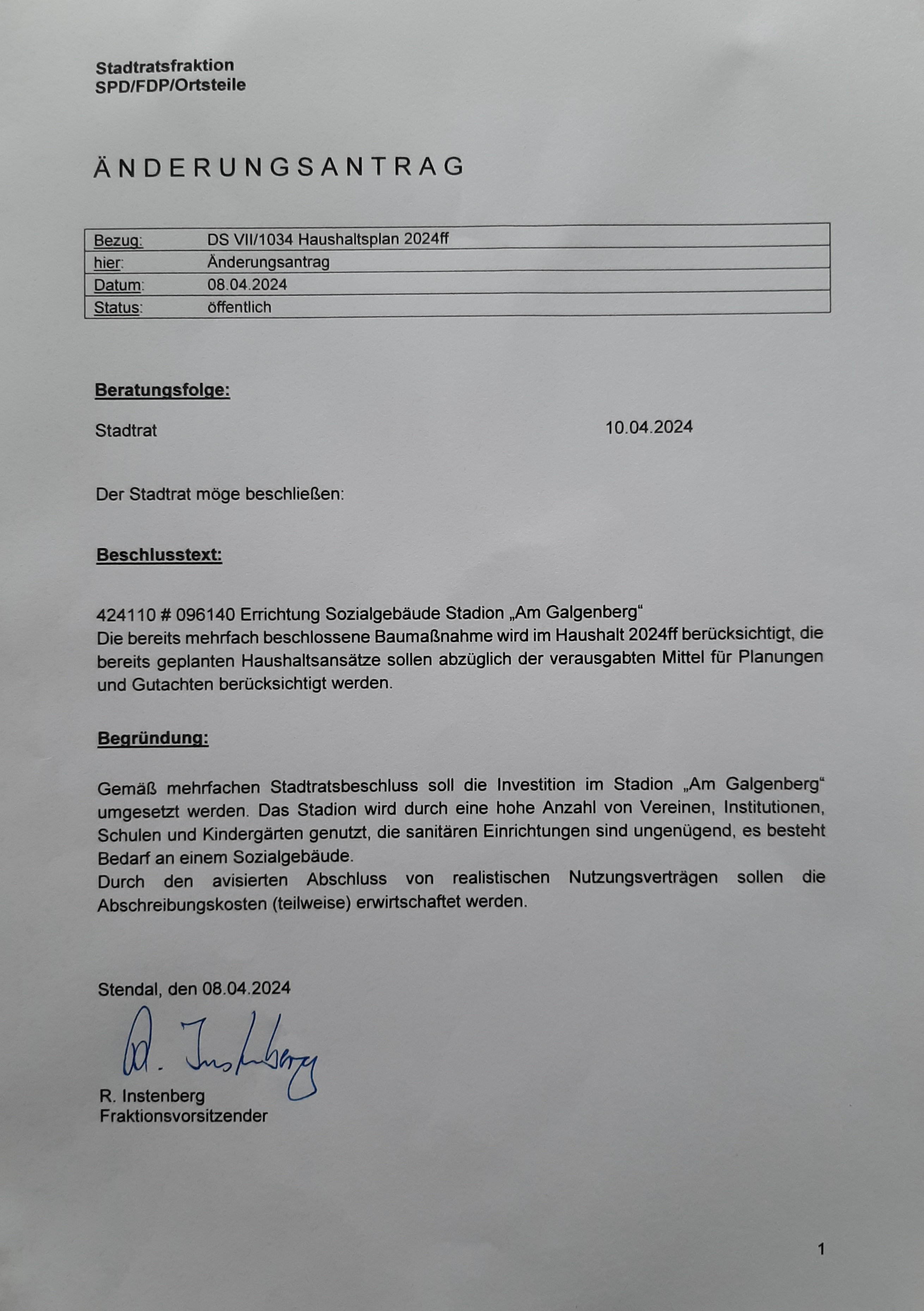 Beschluss: einstimmig empfohlen Abstimmung: Ja: 3, Nein: 0, Enthaltung: 0, Befangen: 0 | VII/1034 | |